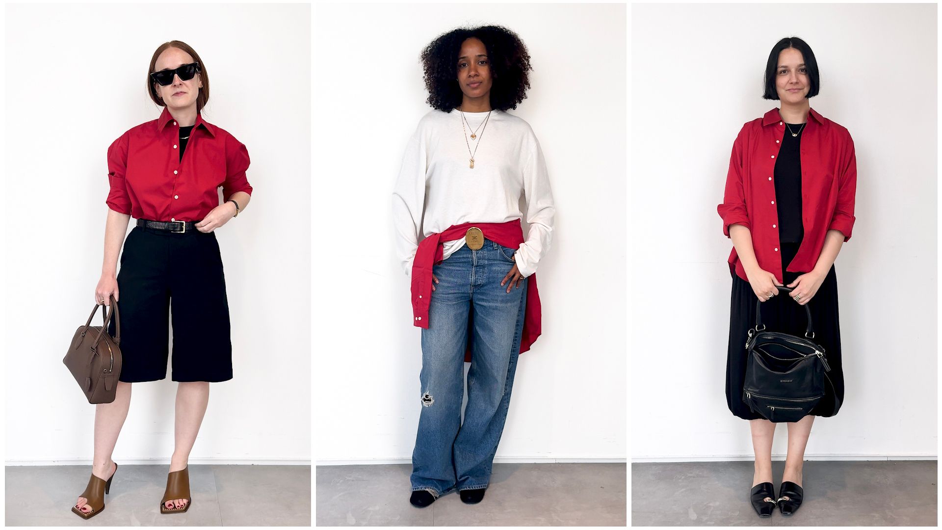 One red shirt. Three Vogue editors. Here’s how to style Comme Si’s La Classica in three entirely different ways.
