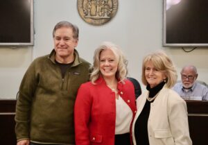Councilwoman Angelia Kiker (center) congratulates Rick Coulon and Gloria Camp for being named to the Clarkesville Housing Authority Board. (Patrick Fargason/Now Habersham)