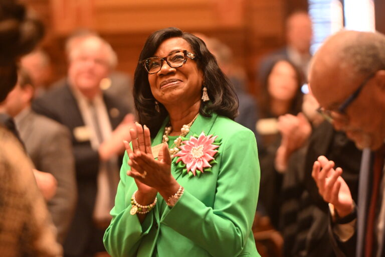 House Minority Leader Carolyn Hugley at the 2026 State of the State address. (Ross Williams/Georgia Recorder)