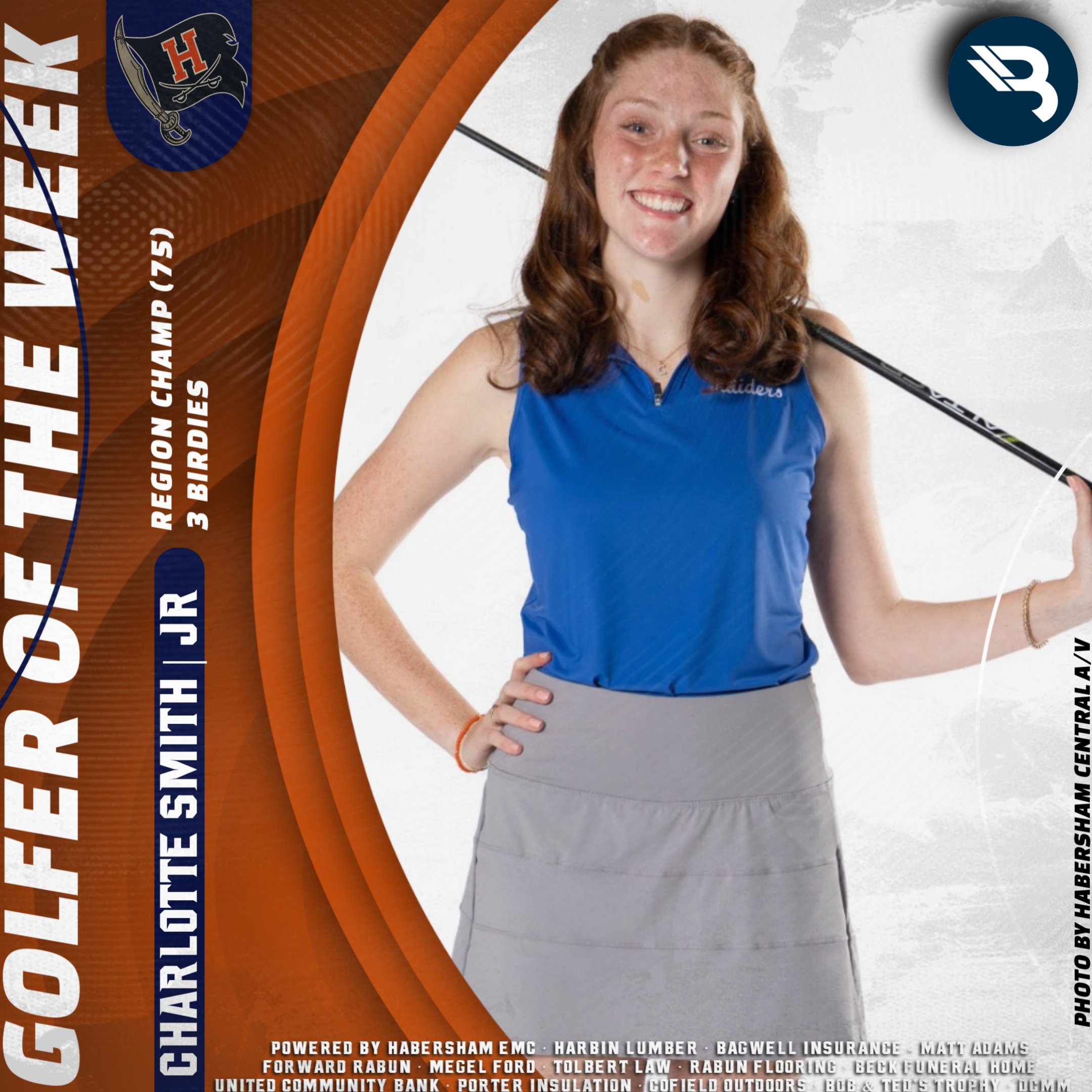 Charlotte Smith had one of the best rounds ever for the Lady Raiders. The Habersham Central junior posted a 75 to win the individual region title, and lift Habersham to the team title as well. She had three birdies as part of her amazing performance, and earns her first POW award.