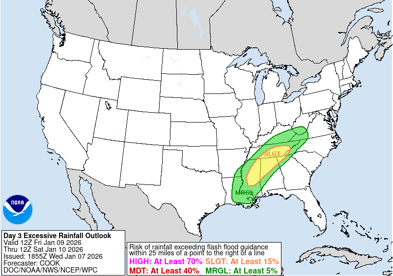 The rain will become heavier and more widespread on Friday night and there is growing potential for a heavy rain and isolated flooding event on Saturday. The Weather Prediction Center now has much of North Georgia under a marginal risk for flash flooding on Friday night, with a slight risk for far Northwest Georgia. This risk area is likely to expand east through the day on Saturday.