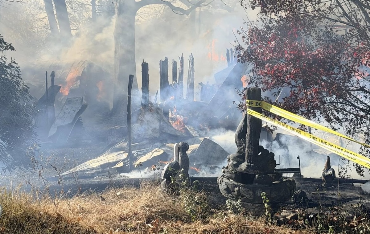 The fire destroyed several structures on the property and displaced the residents. (Carnes Creek Fire Department/Facebook)