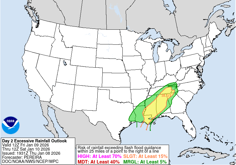 There is a marginal risk for some flash flooding across the far north/west part of the region. The Weather Prediction Center draws the line roughly from Columbus up to Atlanta.
