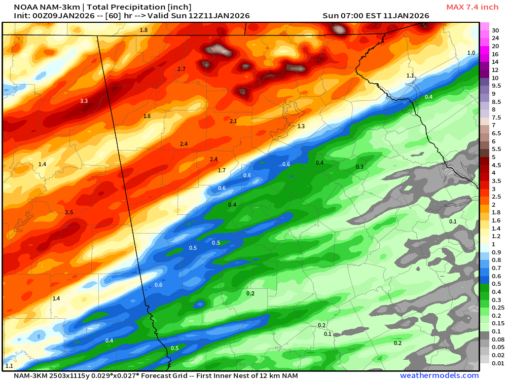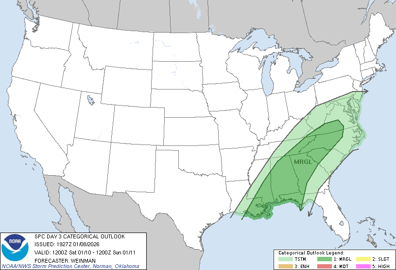 Showers will become likely overnight and some embedded thunderstorms are also possible. The Storm Prediction Center has placed all of West-Central Georgia under a marginal risk for severe storms from very late Friday night through the afternoon on Saturday.