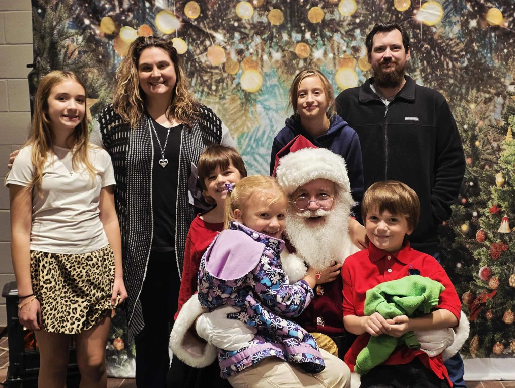 The Tilley family stands with Santa (From the left: Bella Tilley, Brittany Tilley, Jonah Tilley, Hope Tilley, Lacey Tilly, Jay Tilly, and Aiden Tilley), excited to support Madyson Tilley and the Habersham Central Band. (Carly McCurry / Now Habersham)