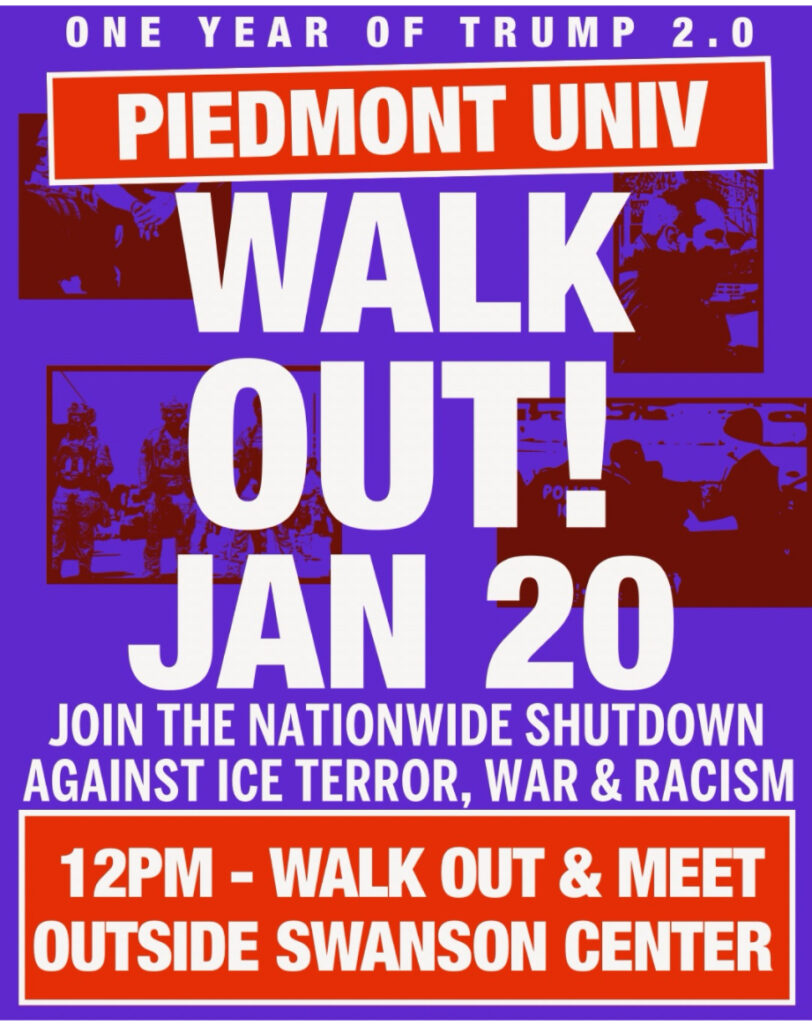 The protest was part of a broader nationwide effort marking the one-year anniversary of President Donald Trump’s second term. PSL Atlanta’s call to action encouraged students across the country to walk out of classes and participate in demonstrations opposing immigration enforcement practices and other policies.