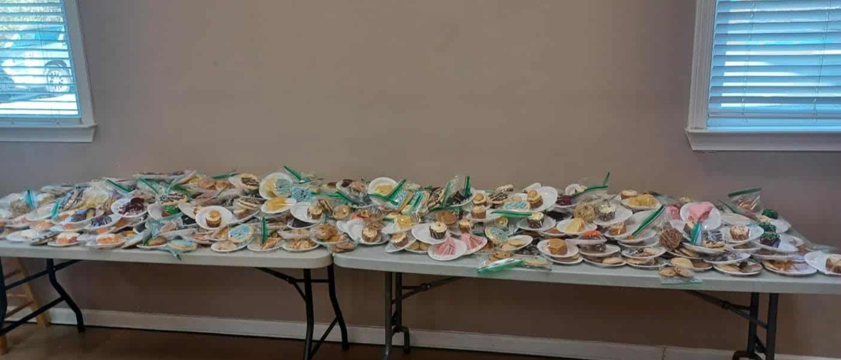Last year, volunteers filled long tables with sweets, each plate wrapped and ready for the hundreds of guests who gathered for the Clarkesville Community Thanksgiving. (Photo: Clarksville Community Thanksgiving)