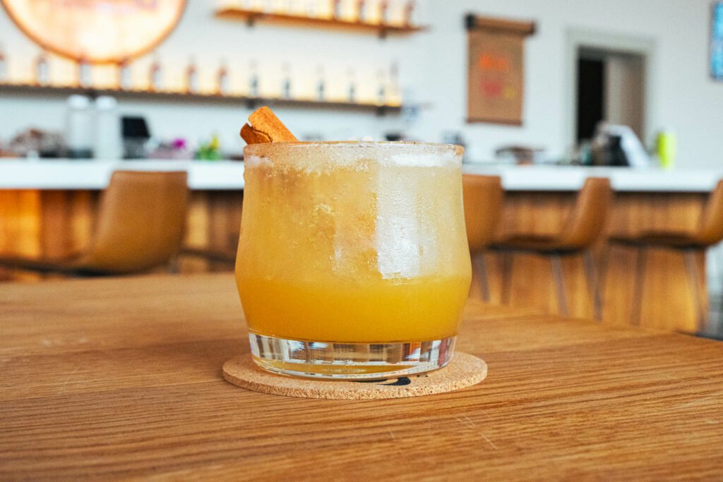We didn’t have time for a tour on our recent visit but would love to go back and get the full picture. We can tell you just how incredible the tasting room and event space were though, we will absolutely be returning with some friends for one of their events. We’ve rambled a lot already and you’re probably wondering when we’ll get to the drinks. During our visit we tried two of their seasonal offerings, “The Orchard” and the “Ginger Fizz.” Both phenomenal. The Orchard features their Gin, apple cider, honey, lime and a cinnamon sugar rim; taste of fall anyone? I’m a sucker for a good ginger-based drink and the “Ginger Fizz” here was one of the best I’ve had. Seasonal Gin, ginger infused simple syrup, lemon, ginger beer, and topped with candied ginger. It sounds like a lot if you’re not a ginger fanatic, but it was the perfect blend of sweet and spicy. So much so that I went home with a bottle of gin and tried to recreate it. (You’d rather have theirs, trust me.) Definitely stop in and check these guys out if you’re in the area.