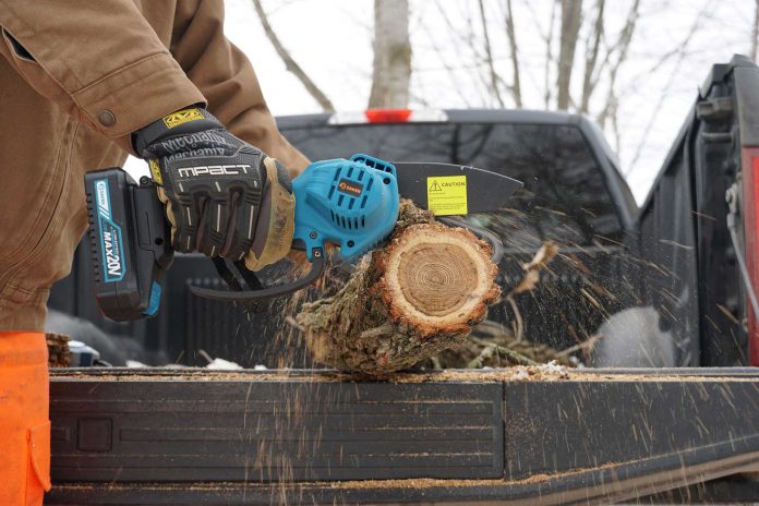 I also field tested the “upgraded” version of the Saker Mini Chainsaw which has a 6-inch bar and supposedly an improved motor. However in my testing this saw actually overheated more quickly and cut more slowly than the original 4-inch version. If you have your heart set on a longer bar length, then I’d recommend stepping up in price and going with a Milwaukee or Dewalt saw (which have 8-inch bars and far better speed and power).